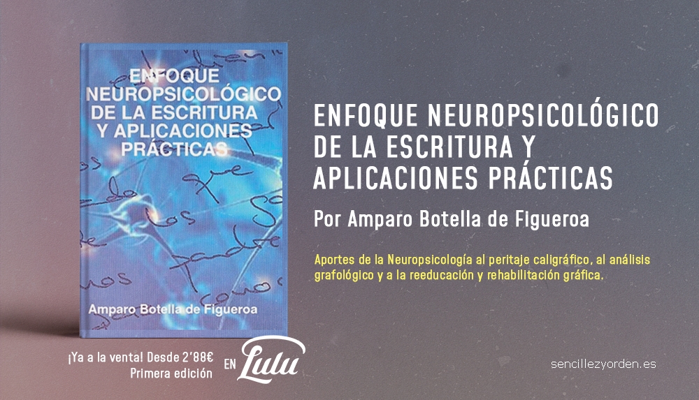 Por último recordar el libro: “ENFOQUE NEUROPSICOLÓGICO DE LA ESCRITURA Y APLICACIONES PRÁCTICAS” que desarrolla muchos de estos planteamientos sobre “los aportes de la neuropsicología al peritaje caligráfico , al análisis grafológico y la reeducación y rehabilitación gráfica que podrán adquirir en www.lulu.com cuya autora es Amparo Botella de Figueroa. ..