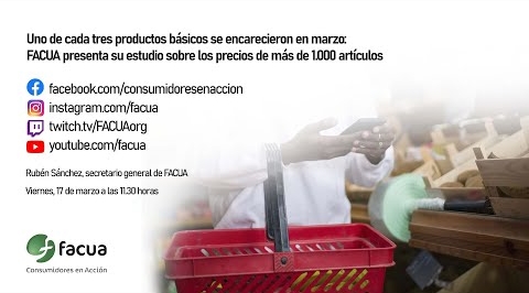 El secretario general de FACUA, Rubén Sánchez, presenta en rueda de prensa los resultados del nuevo estudio de la asociación sobre los precios de productos básicos en supermercados e hipermercados.