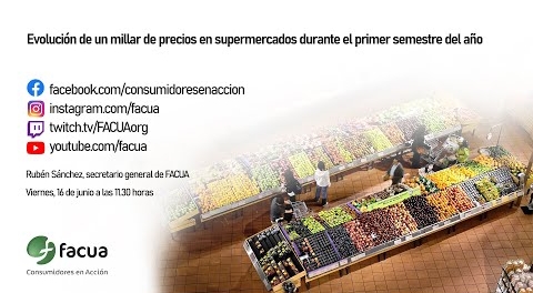 El secretario general de FACUA, Rubén Sánchez, informa en rueda de prensa del último estudio de la asociación sobre los precios de los alimentos básicos, así como de su evolución en los primeros seis meses de 2023.
